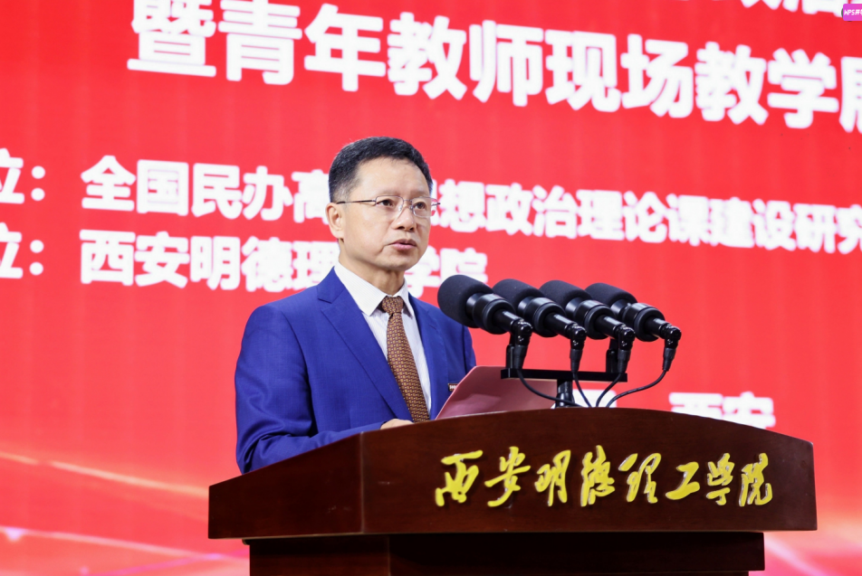 孙迎光在致辞中充分肯定了西安明德理工学院为本次活动所做的筹备工作。他结合当前民办高校思政课建设的形势与任务,强调要聚焦思政课的思想性、理论性、针对性、亲和力,推动民办高校思政课建设走深走实,为培养担当民族复兴大任的时代新人贡献力量。