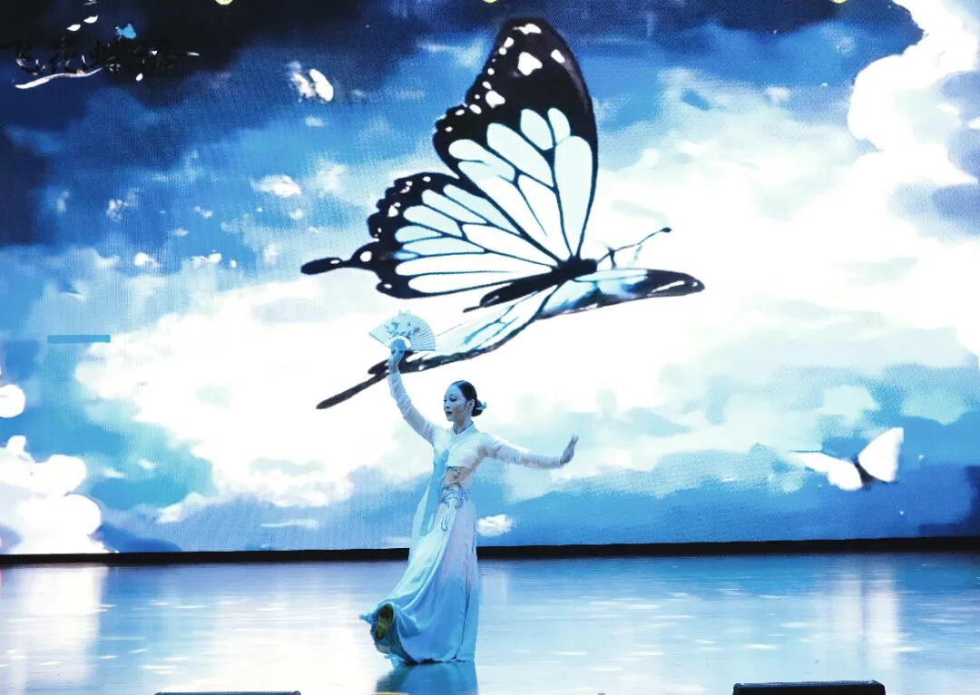 音乐会以民族管弦乐《金蛇狂舞》的昂扬旋律启幕,四大篇章环环相扣,将艺术实践与思政教育熔铸一炉:首章“厚植沃土·文脉传承”中,教师们以民族乐器与舞蹈扎根地方文化,从《飞花蝶语》的蝶变隐喻,到《林冲夜奔》的英雄豪情,再到《溯·跃》中鱼跃龙门的坚韧,展现了对中华文脉的深情守护;次章“红色印记·岁月如歌”以红色经典为魂,《响寂之间》以匠心精神诠释育人初心,《沂河欢歌》用山东民歌抒发家国情怀,《云想·花想》借李白诗韵传递深切情思,《寂静的草原》以蒙古族舞姿守护生态文明,让红色基因在艺术中薪火相传;第三章“多彩中华·师者匠心”中,教师化身文化使者,以萨克斯重现阅兵式的《钢铁洪流》,借伦巴双人舞演绎《奉献》的守护之志,用《科尔沁》的豪迈肢体展现民族精神,更以手风琴融合巴西Bossa Nova节奏,彰显艺术跨界的创新活力;终章“时代交响·砥砺前行”面向未来,《飞天》以长绸勾勒丝路文明的交融之美,《敦煌》用民乐对话再现乐舞辉煌,全体教师以《我的祖国》的合唱收束,将个人匠心与时代使命熔铸成激昂的交响。