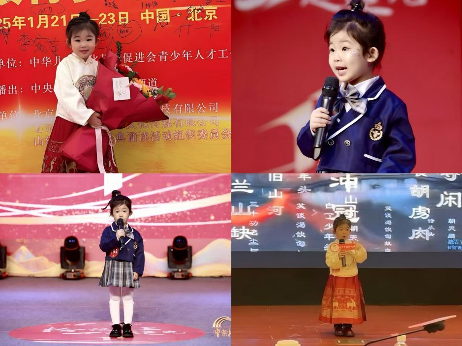 年仅4岁的石一然,早已是舞台上的“常客”。她热爱语言艺术,长期活跃于各类朗诵与主持活动中,凭借扎实的功底和灵动的表现力,斩获多项省级、国家级荣誉,用实力积累起亮眼的成长履历。
