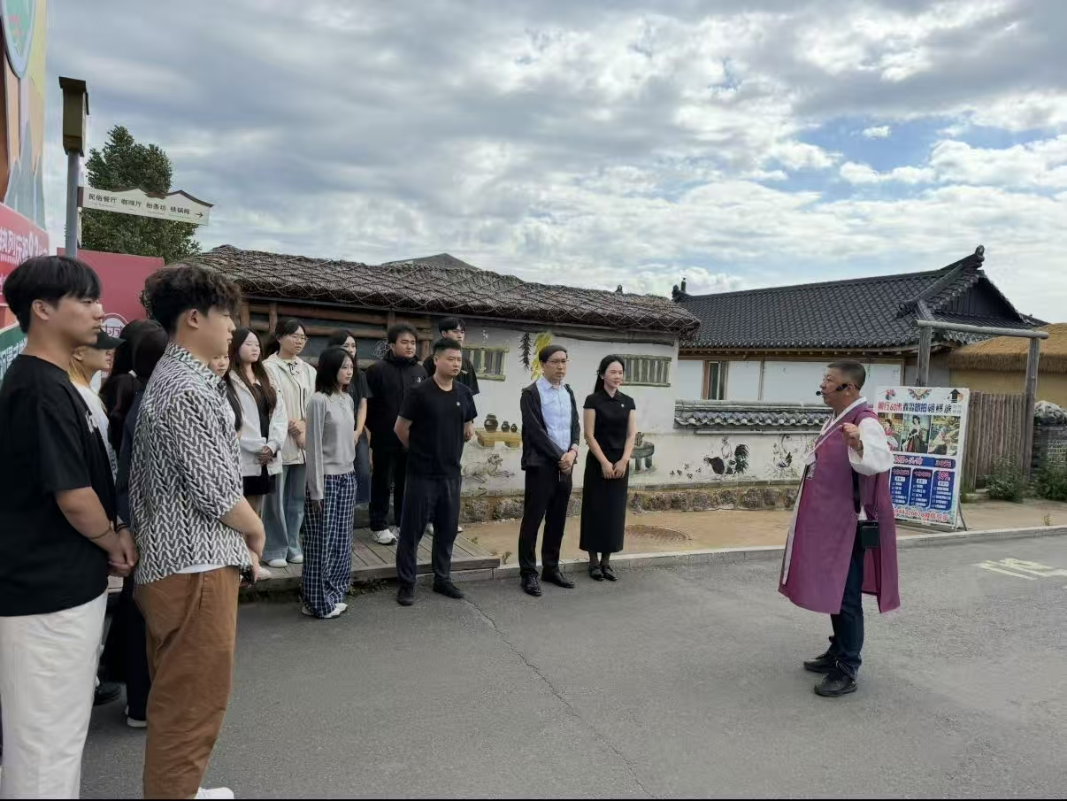 随后,师生们前往位于敦化市红石乡的中成朝鲜族生态村。这座村落是展现朝鲜族文化特色与乡村振兴成果的典型代表。在村内,师生们亲手参与辣白菜制作。在动手实践中感受朝鲜族饮食文化的魅力,进一步深化“铸牢中华民族共同体意识”的认知,让多元文化体验成为“行走的思政课”的延伸,实现红色教育与文化传承的双向赋能。