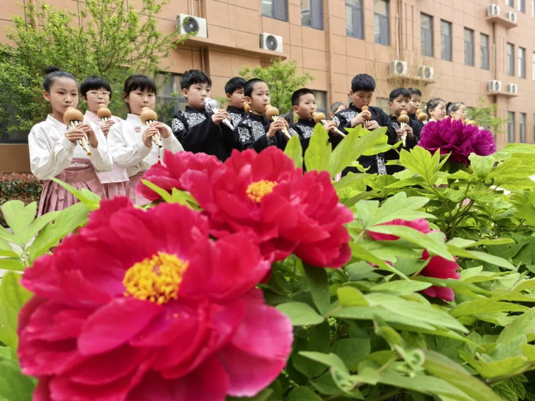 在此基础上,将牡丹文化融入教育教学,开设了牡丹书画、牡丹诗词、牡丹摄影、牡丹面塑、牡丹传说等特色校本课程,让学生了解牡丹精神的内涵,培养学生的高雅气质,塑造学生的自然美、语言美、心灵美、行为美。同时,打造“党旗牡丹相映红”党建品牌,以支部建设为核心,务实“牡丹红”堡垒,立阵地建设,创品牌文化;以教师发展为重点,打造“金花蕊”先锋,守师德初心,绽师风之美;以学生成才为根本,培育“生机绿”菁英,引童心向党,铺成长底色。在推动党务工作与教育教学工作深度融合的过程中,引领师生听党话、跟党走,爱祖国、爱家乡。“下一步,我们将进一步挖掘牡丹文化的内涵,不断丰富课程体系,让学生在牡丹文化的滋养下幸福、快乐成长。”校长朱守鹏说。